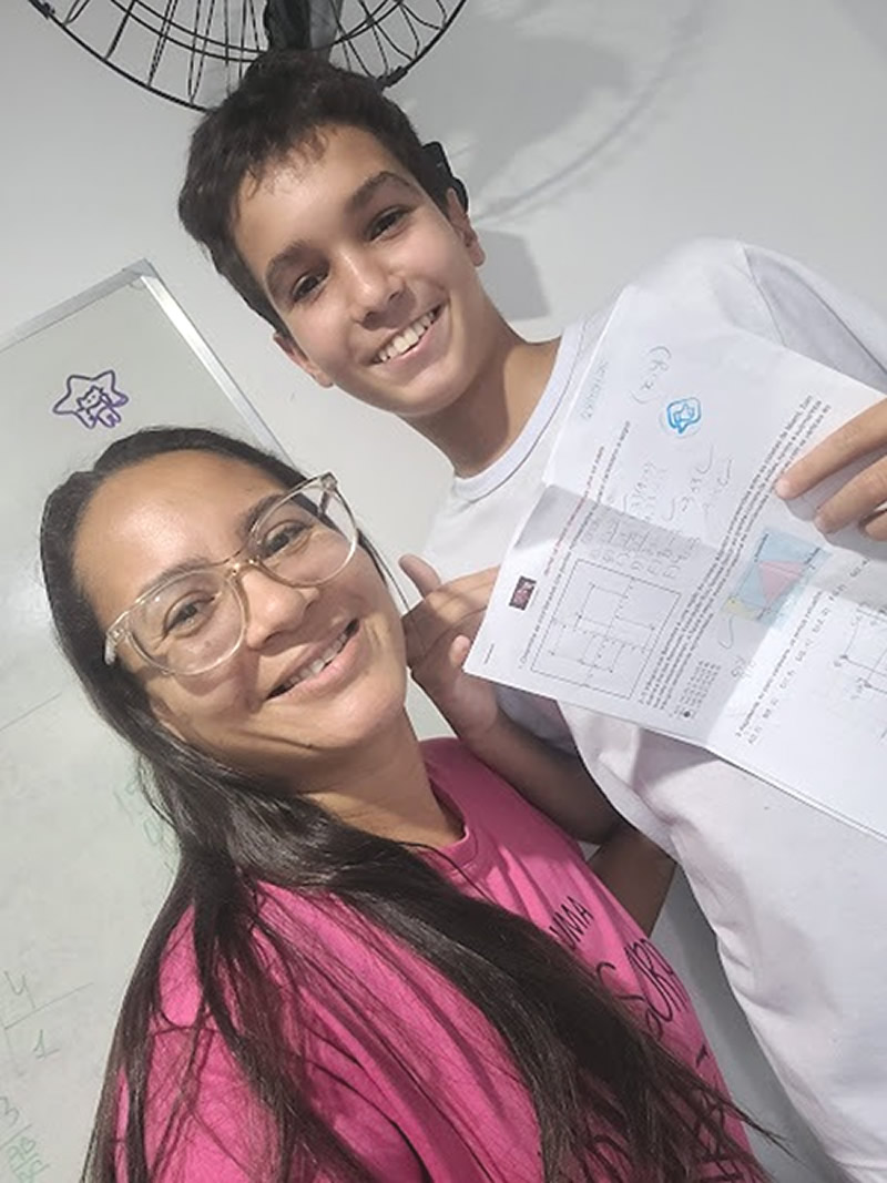 Mãe"Professora excelente, ajudou muito nas lições, nas dúvidas e mesmo com só 1 h e meia de aula, já conseguiu ajudar muito."